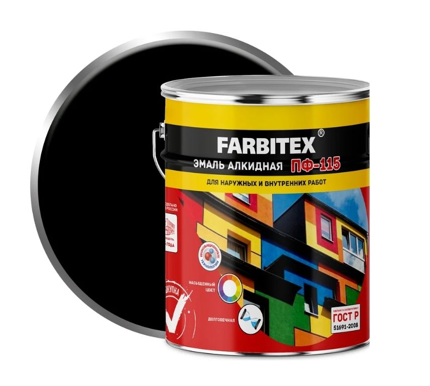 Эмаль ПФ 115 Черный (5кг) Farbitex