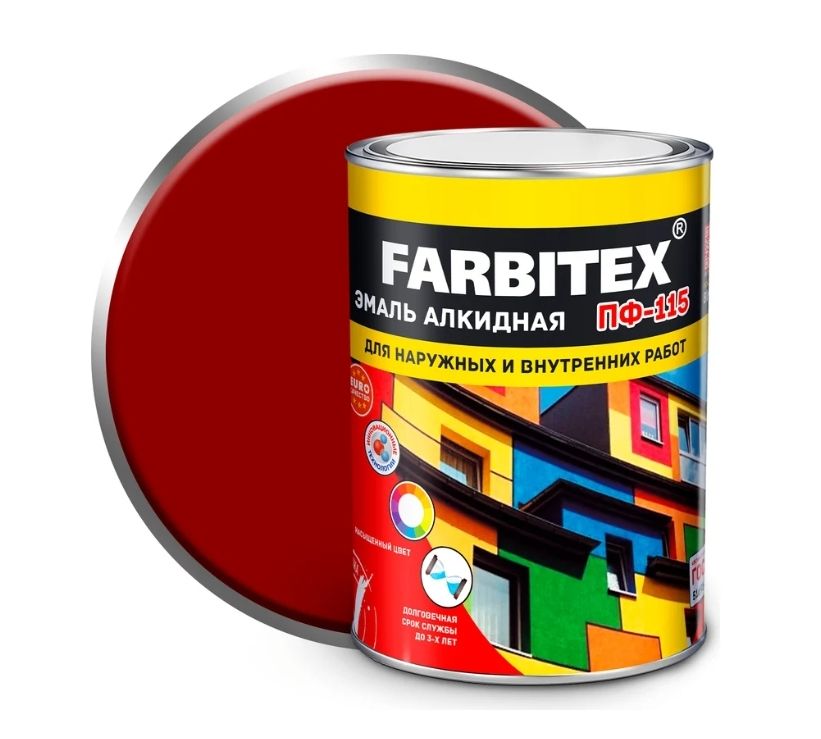 Эмаль ПФ 115 Красный (2,7кг) Farbitex
