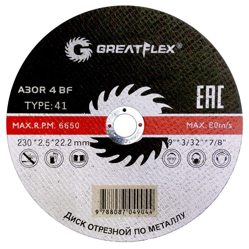 Круг отрезной по металлу 230*1,8*22 (Greatflex)