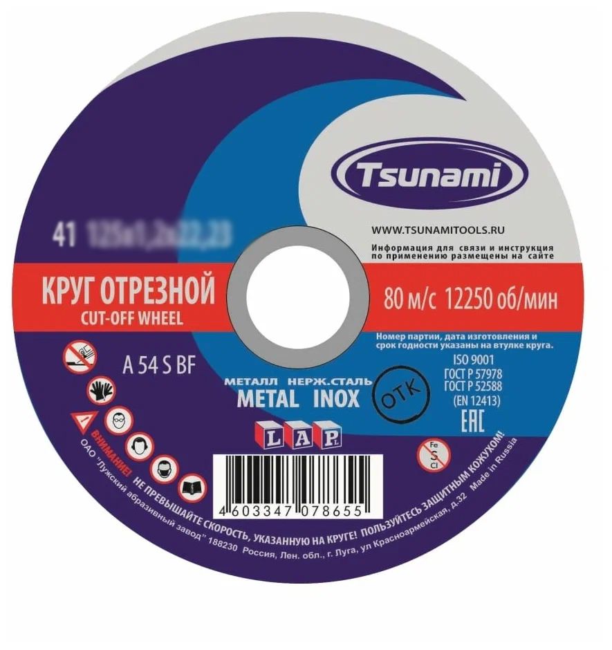 Круг отрезной по металлу 230*1,8*22 (Цунами)