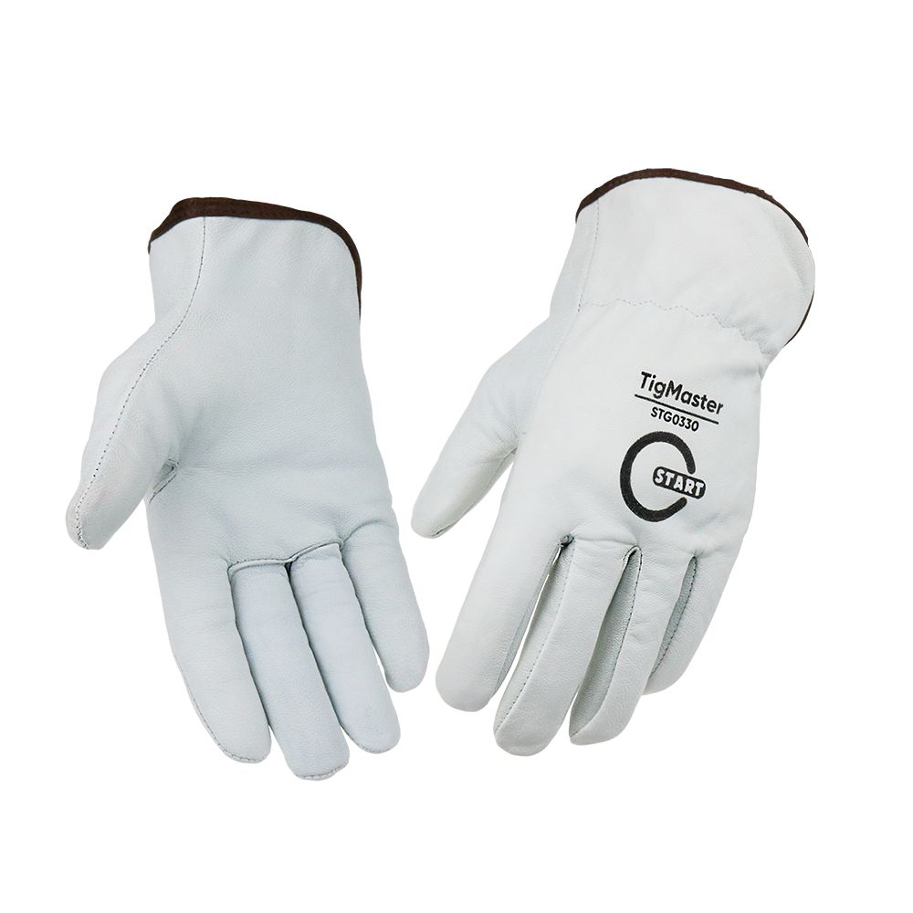 Перчатки TigMaster STG0330 для защиты от механических воздействий. Перчатки из кожи козы (овечьей) белого цвета. Мягкая кожа сорта АВ (1,2 мм +/– 0,2 мм). На запястье резинка. Перчатки предназначены для защиты рук от ОПЗ, истирания, обеспечивают высокий комфорт, рекомендованы для продолжительного ношения, при работе с инструментом, для водителей. Обеспечивают хорошие показатели манипулирования, тактильной чувствительности и комфорта при достаточно высоких показателях механической защиты.