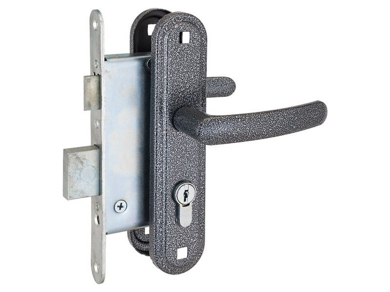 Замок врезной цилиндр ЗВ-4 с защелкой и ручками серебро